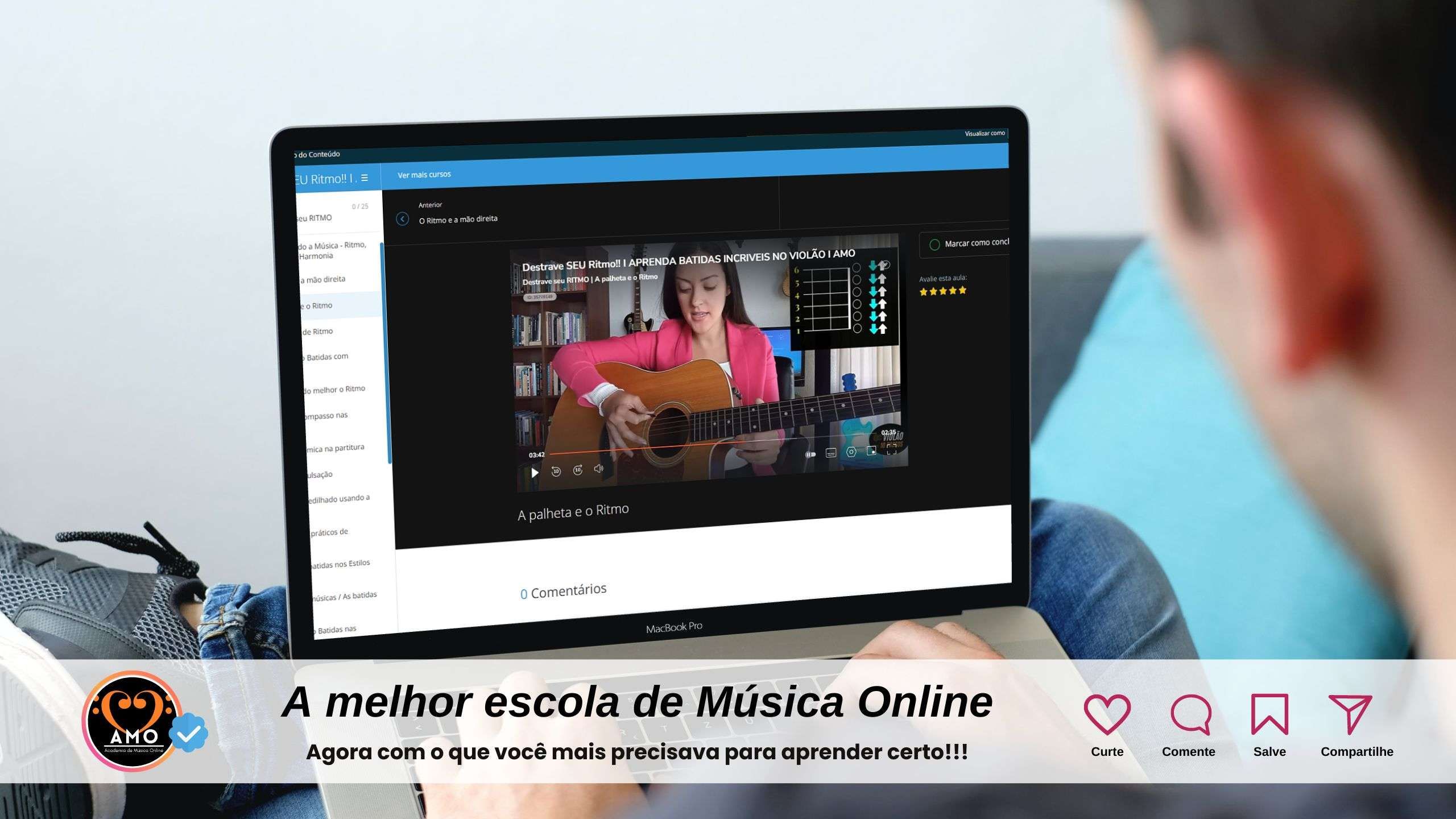 Gosto de rock e comprei uma guitarra, mas para dedilhar é muito difícil sem treinar o ritmo e os exercícios de dedilhado.. eu achei esse curso na internet bem rápido e acessível, como todo conhecimento novo é valido, eu não conhecia a AMO mas realmente me surpreendi porque os exercicios de dedilhado são ótimos e me ajudou a solar na guitarra muito bem. show, recomendo 2 vezes, rsrs.
