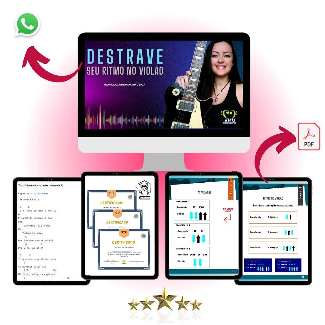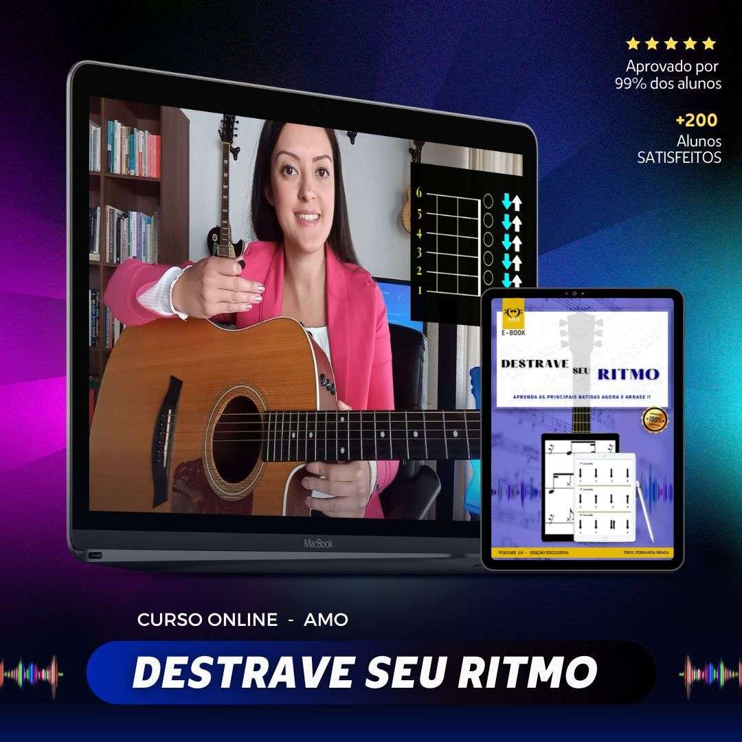 Eu estava aprendendo violão sozinha atraves de vídeos do youtube, mas não conseguia acertar as batidas tinha que colocar velocidade x0.5 nas músicas para conseguir tocar. o próprio youtube me indicou um vídeo de ritmo da amo e quando eu comecei a praticar as aulas do pacote 'destrave seu ritmo' aí que consegui tocar em 15 dias até as batidas eletronicas que mais gosto. super recomendo ela é ótima professora.